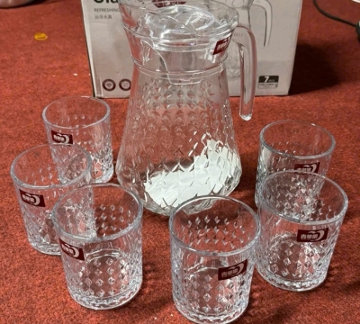 Bộ Bình Ly Thủy Tinh Thổ Cẩm (1 Bình 6 Ly)